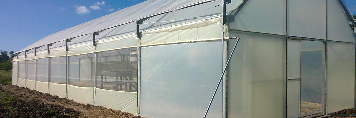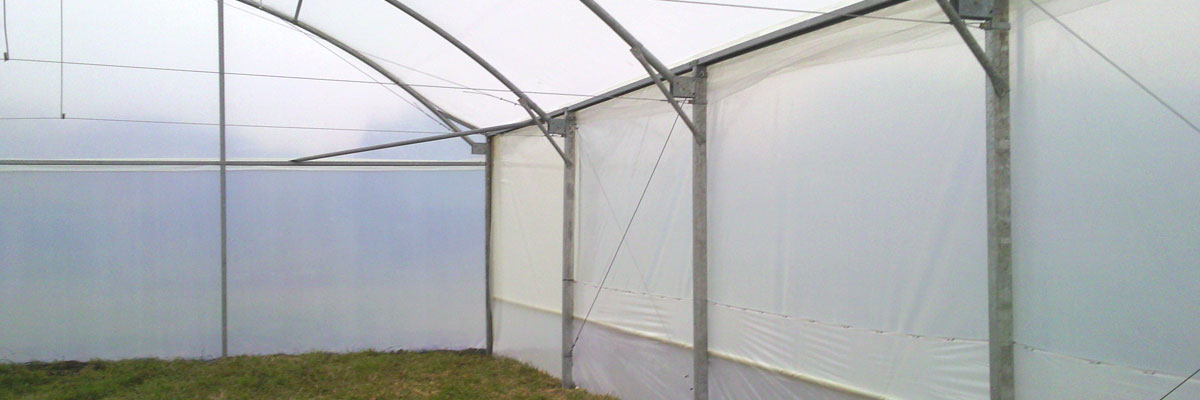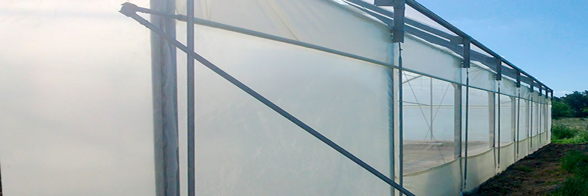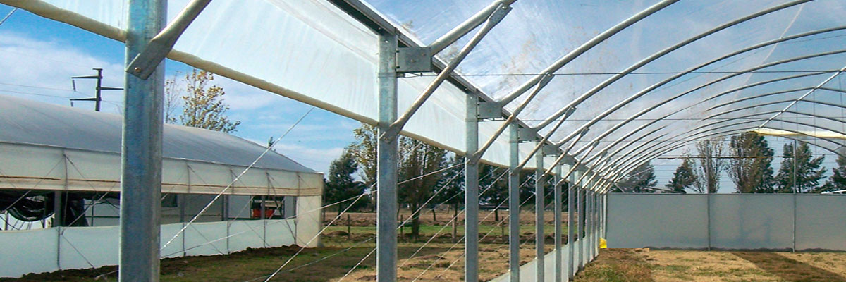 - Refuerzos internos cada 3 metros que sirven como soporte de malla de sombreo, mallas corredizas, riego por aspersión, sistema de iluminación, entutorado de plantas, macetas colgantes, mangas de calefacción etc.