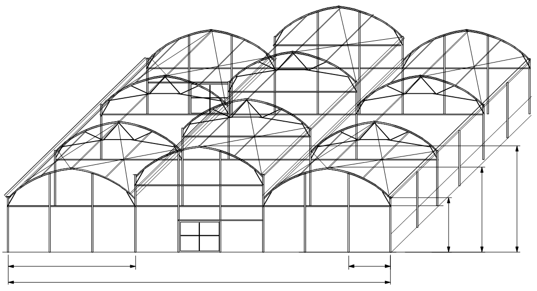 - Refuerzos internos cada 2 metros que sirven como soporte de malla de sombreo, mallas corredizas, riego por aspersión, sistema de iluminación, entutorado de plantas, macetas colgantes, mangas de calefacción etc.